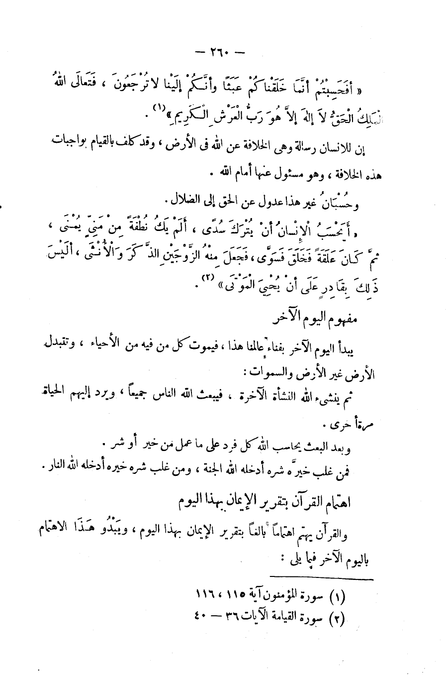 {أَفَحَسِبْتُمْ أَنَّمَا خَلَقْنَاكُمْ عَبَثاً وَأَنَّكُمْ إِلَيْنَا لا تُرْجَعُونَ *فَتَعَالَى اللَّهُ الْمَلِكُ الْحَقُّ لا إِلَهَ إِلاَّ هُوَ رَبُّ الْعَرْشِ الْكَرِيمِ} (¬1).