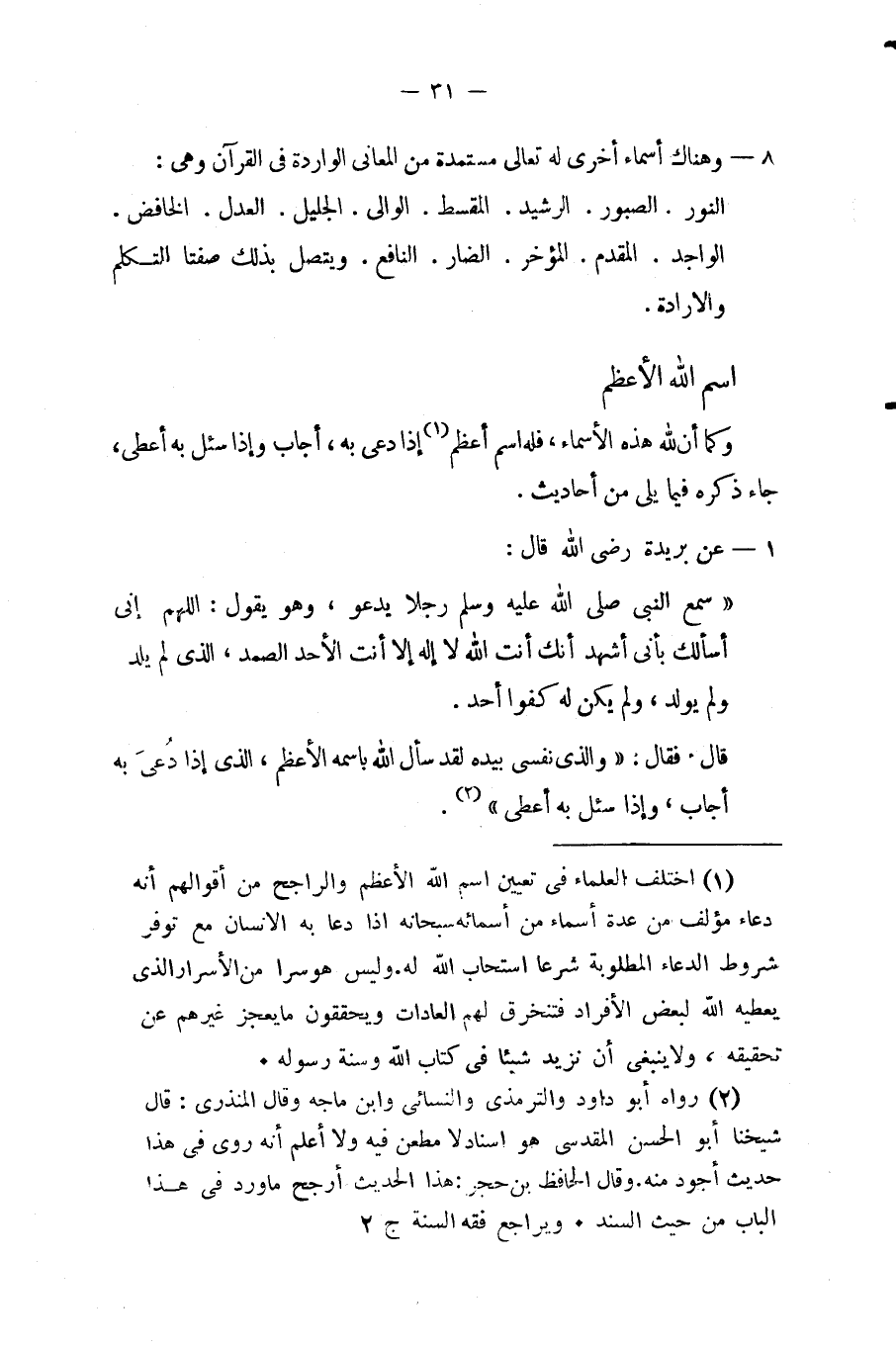 1 - عن بريدة رضي الله عنه قال: سمع النبى صلى الله علية وسلم رجلاً يدعو، وهو يقول: " اللهم إنى أسألك بأنى أشهد أنك أنت الله لا إله إلا أنت الأحد الصمد، الذى لم يلد ولم يولد، ولم يكن له كُفُوًا أحد " .. قال: فقال: «والذى نفسى بيده لقد سأل الله باسمه الأعظم، الذى إذا دعى به أجاب، وإذا سئل به أعطى» (¬2).
