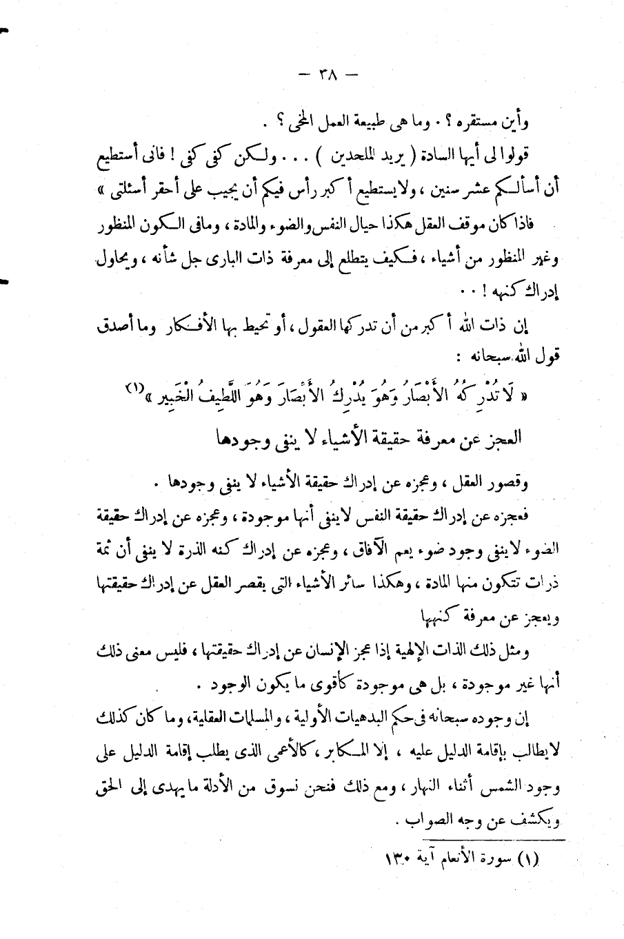 فإذا كان موقف العقل هكذا حيال النفس والضوء والمادة، وما فى الكون المنظور وغير المنظور من أشياء .. فكيف يتطلع إلى معرفة ذات البارى جل شأنه؟ ويحاول إدراك كنهه؟!