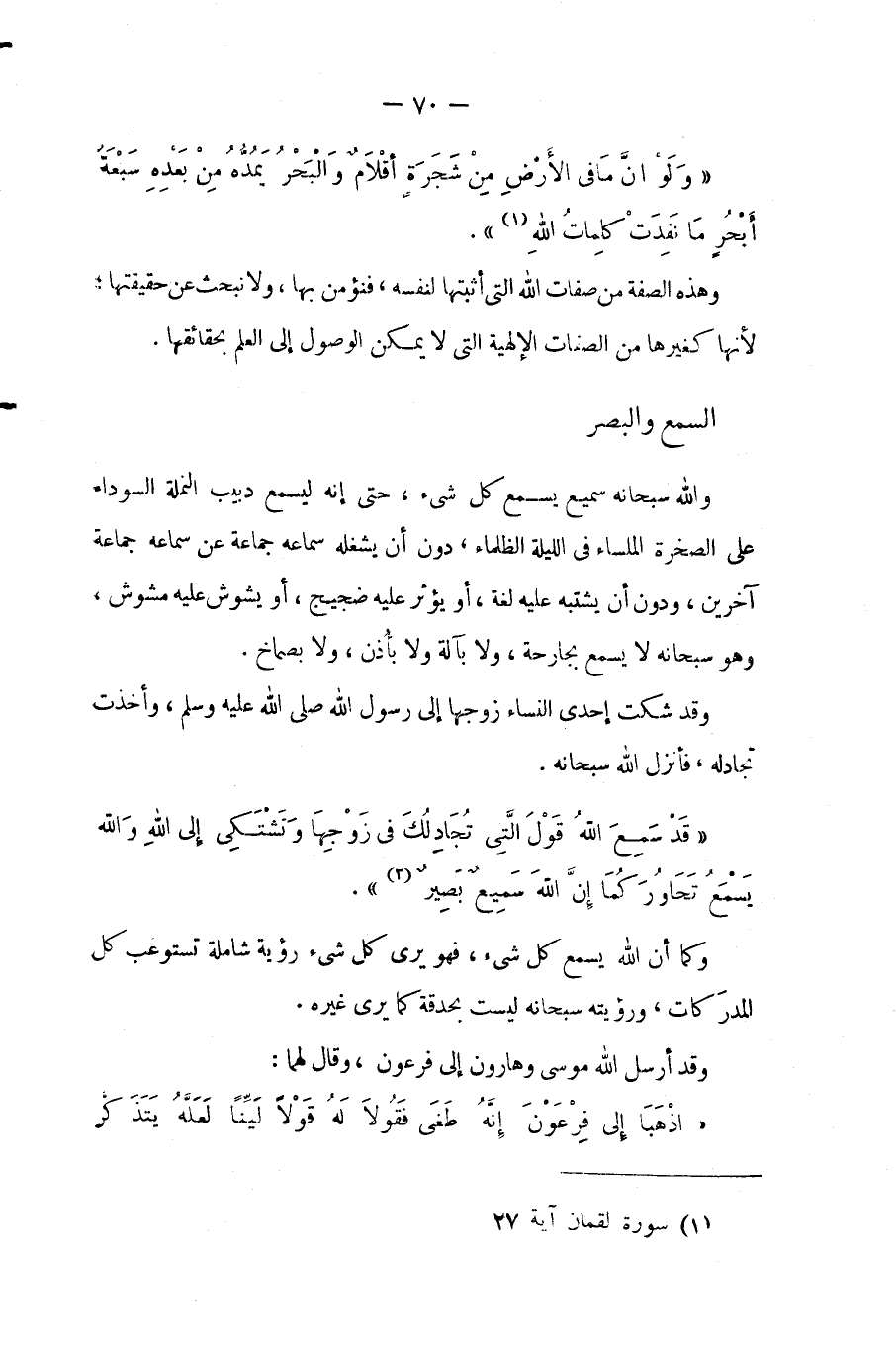 {قَدْ سَمِعَ اللَّهُ قَوْلَ الَّتِي تُجَادِلُكَ فِي زَوْجِهَا وَتَشْتَكِي إِلَى اللَّهِ وَاللَّهُ يَسْمَعُ تَحَاوُرَكُمَا إِنَّ اللَّهَ سَمِيعٌ بَصِيرٌ} (¬2).