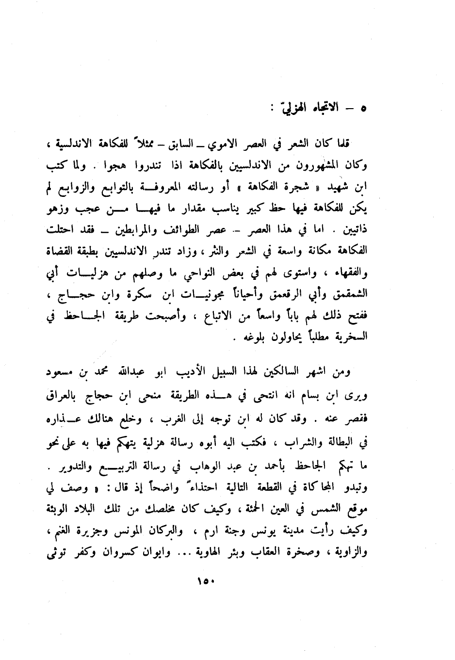 ومن اشهر السلكين لهذا السبيل الأديب أبو عبد الله محمد بن مسعود ويرى ابن بسام انه انتحى في هذه الطريقة منحى ابن حجاج بالعراق فقصر عنه، وقد كان له ابن توجه إلى الغرب، وخلع هنالك عذاره في البطالة والشراب، فكتب إليه أبوه رسالة هزلية يتهكم فيها به على نحو ما تهكم الجاحظ بأحمد بن عبد الوهاب في رسالة التربيع والتدوير. وتبدو المجاكاة في القطعة التالية احتذاء واضحا إذ قال: " وصف لي موقع الشمس في العين الحمئة، وكيف كان مخلصك من تلك البلاد الوابئة وكيف رأيت مدينة يونس وجنة رام، والبركان المونس وجزيرة الغنم، والزاوية، وصخرة العقاب وبئر الهاوية؟ وإيوان كسروان وكفر توثى