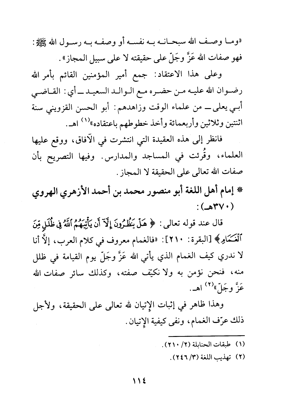 "وما وصف الله سبحانه به نفسه أو وصفه به رسول الله - صلى الله عليه وسلم -: فهو صفات الله عز وجل على حقيقته لا على سبيل المجاز".