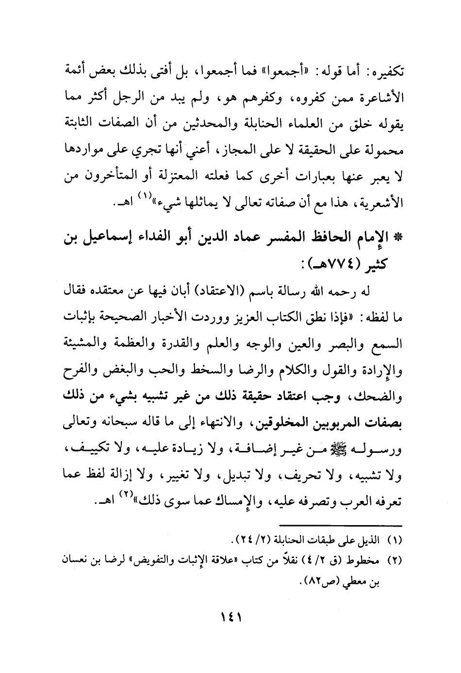 (¬2) مخطوط (ق 4/ 2) نقلاً من كتاب "علاقة الإثبات والتفويض" لرضا بن نعسان بن معطي (ص82).