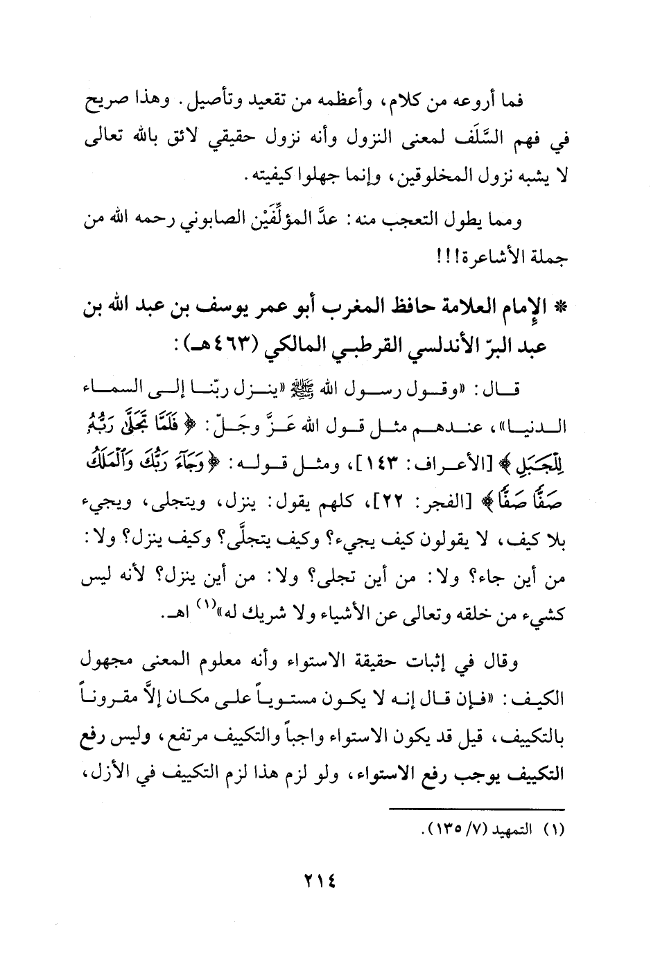فما أروعه من كلام، وأعظمه من تقعيد وتأصيل. وهذا صريح في فهم السلف لمعنى النزول وأنه نزول حقيقي لائق بالله تعالى لا يشبه نزول المخلوقين، وإنما جهلوا كيفيته.