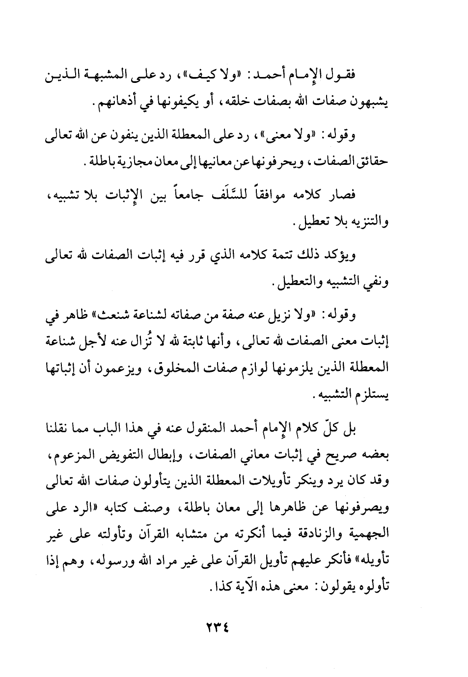 فقول الإمام أحمد: "ولا كيف"، رد على المشبهة الذين يشبهون صفات الله بصفات خلقه، أو يكيفونها في أذهانهم.