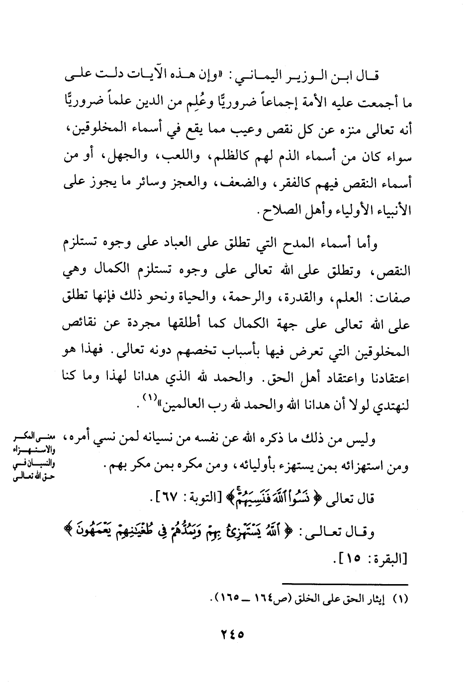 وليس من ذلك ما ذكره الله عن نفسه من نسيانه لمن نسي أمره، ومن استهزائه بمن يستهزء بأوليائه، ومن مكره بمن مكر بهم.