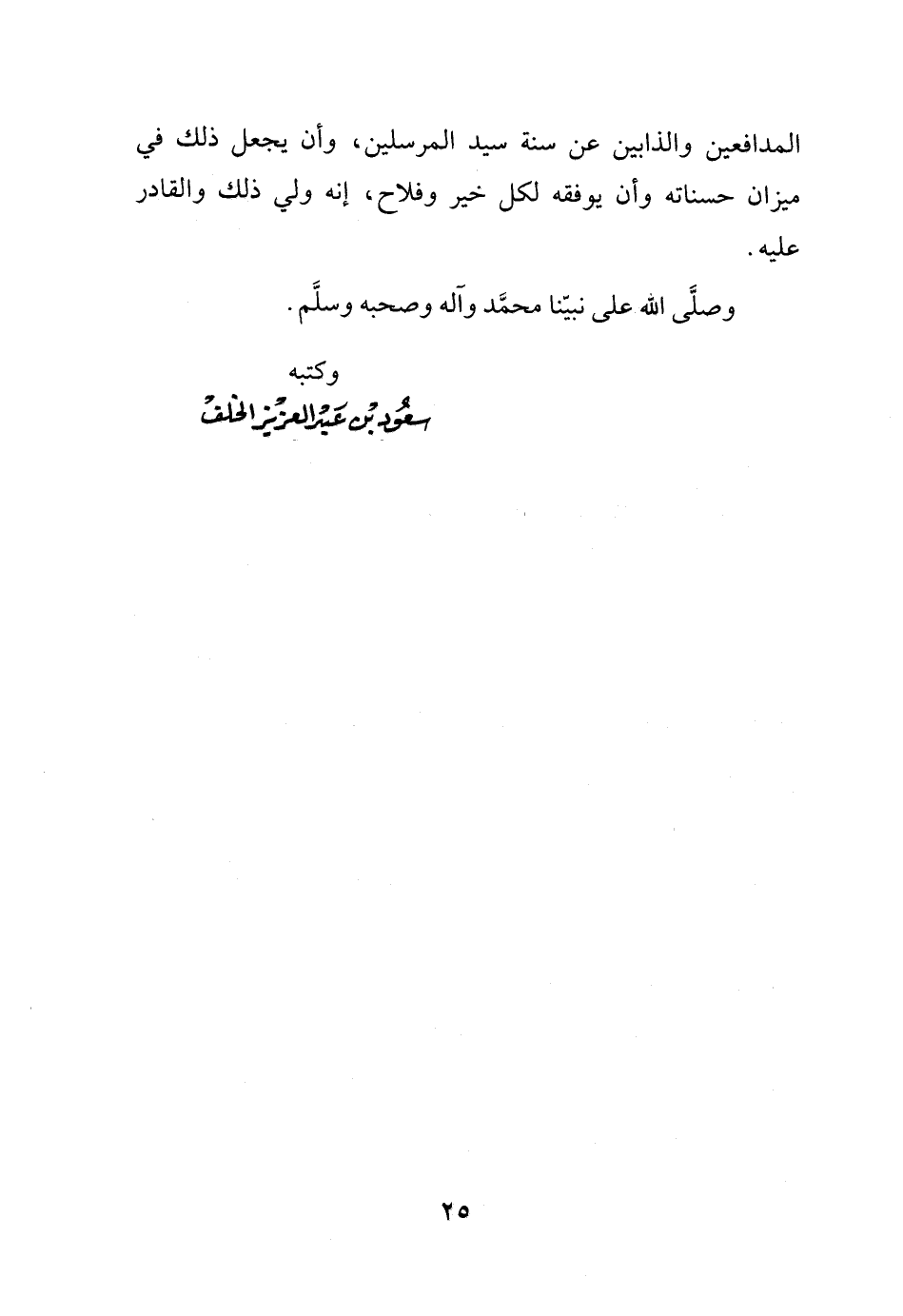 المدافعين والذابين عن سنة سيد المرسلين، وأن يجعل ذلك في ميزان حسناته وأن يوفقه لكل خير وفلاح، إنه ولي ذلك والقادر عليه.