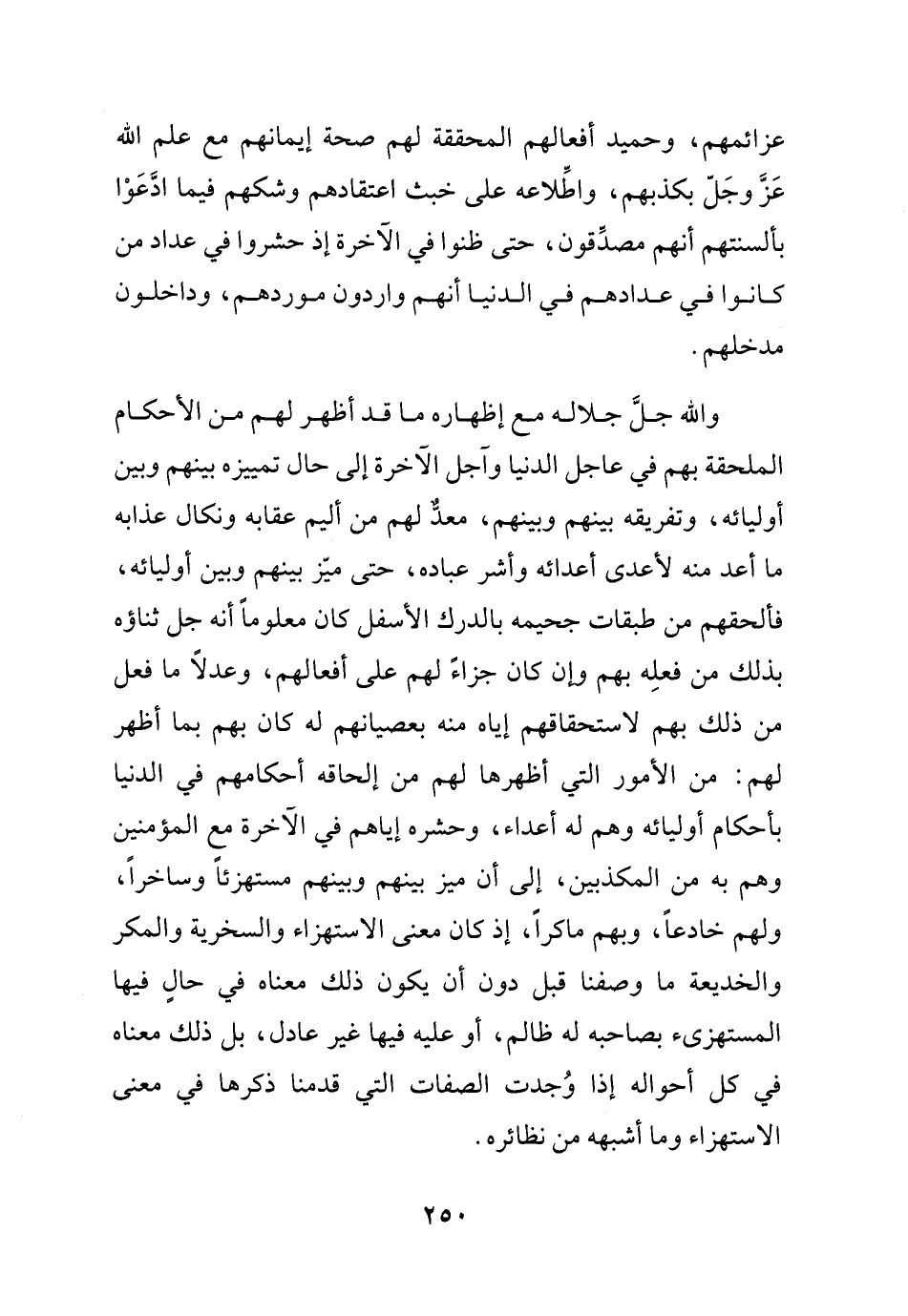 عزائمهم وحميد أفعالهم المحققة لهم صحة إيمانهم مع علم الله عز وجل بكذبهم واطلاعه على خبث اعتقادهم وشكهم فيما ادعوا بألسنتهم أنهم مصدقون حتى ظنوا في الآخرة إذ حشروا في عداد من كانوا في عدادهم في الدنيا أنهم واردون موردهم وداخلون مدخلهم، والله جل جلاله مع إظهاره ما قد أظهر لهم من الأحكام الملحقتهم في عاجل الدنيا وآجل الآخرة إلى حال تمييزه بينهم وبين أوليائه وتفريقه بينهم وبينهم معد لهم من أليم عقابه ونكال عذابه ما أعد منه لأعدى أعدائه وأشر عباده حتى ميز بينهم وبين أوليائه فألحقهم من طبقات جحيمه بالدرك الأسفل