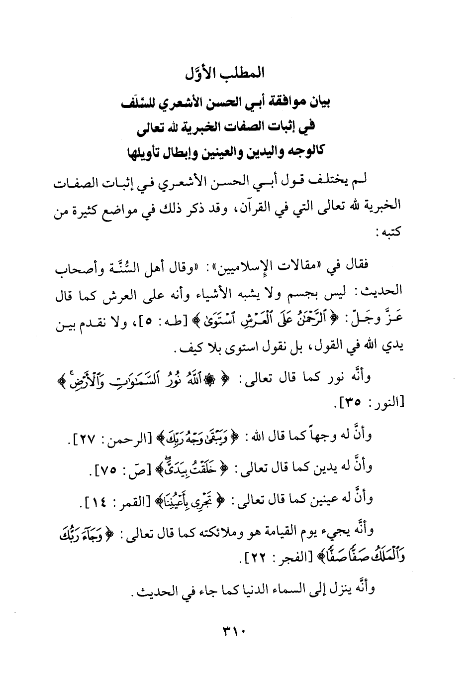 فرع: في موافقة إبي الحسن الأشعري للسلف في إثبات الصفات الخبرية لله تعالى كالوجه واليدين والعينين وإبطال تأويلها