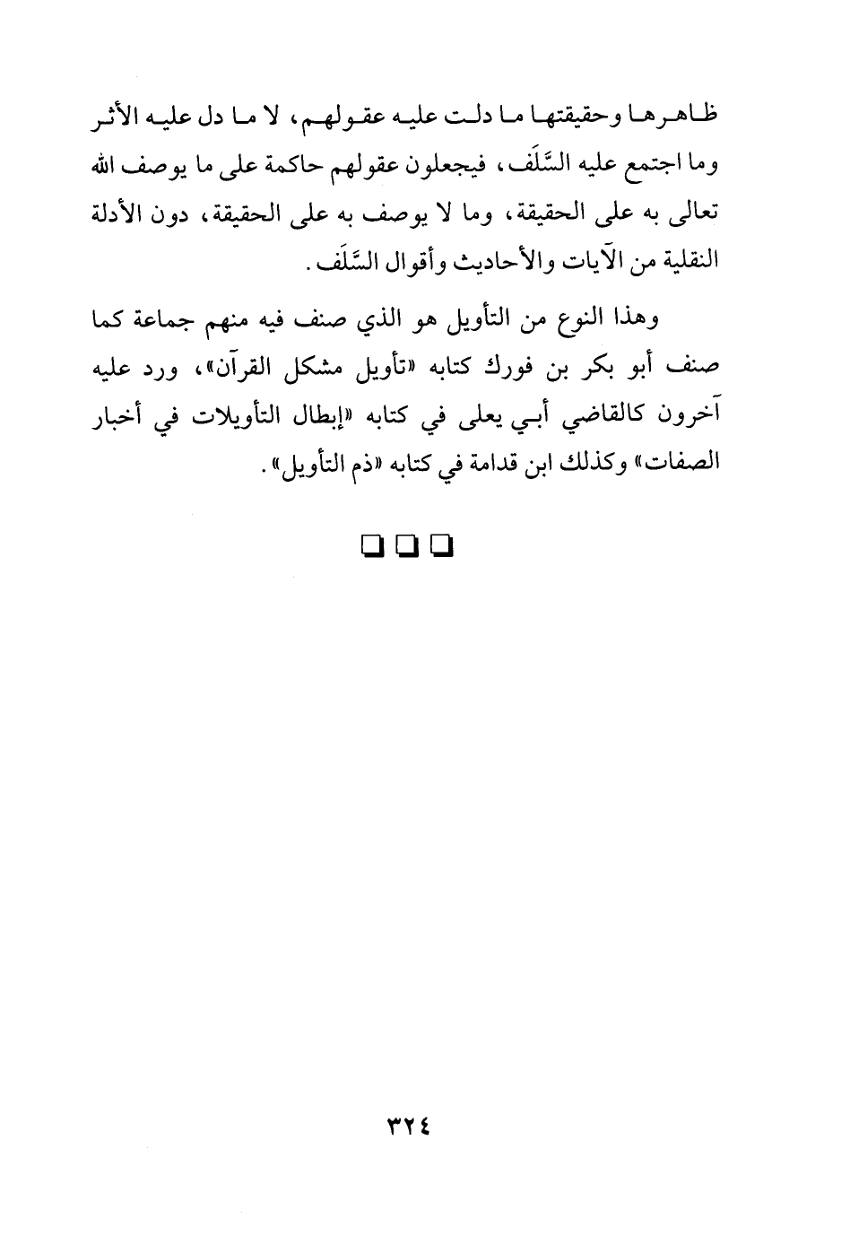 وهذا النوع من التأويل هو الذي صنف فيه منهم جماعة كما صنف أبو بكر بن فورك كتابه "تأويل مشكل القرآن"، ورد عليه آخرون كالقاضي أبي يعلى في كتابه "إبطال التأويلات في أخبار الصفات" وكذلك ابن قدامة في كتابه "ذم التأويل".