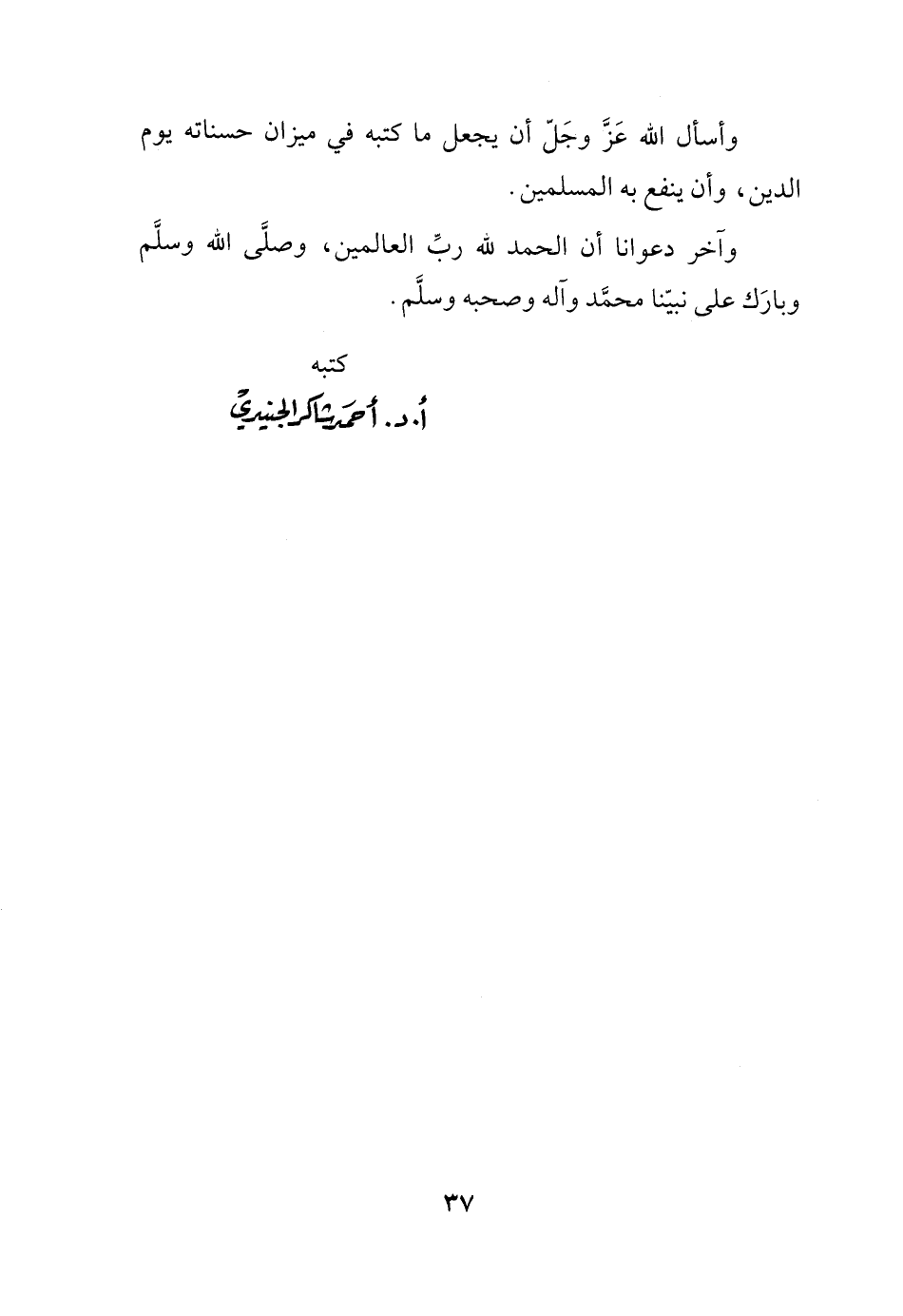 وأسأل الله عز وجل أن يجعل ما كتبه في ميزان حسناته يوم الدين، وأن ينفع به المسلمين، وآخر دعوانا أن الحمد لله رب العالمين، وصلى الله وسلم وبارك على نبينا محمد وآله وصحبه وسلم.