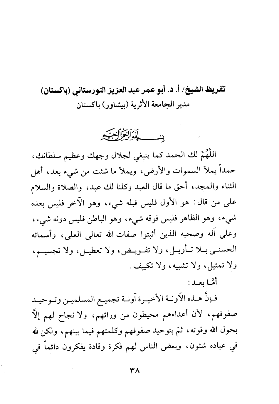 تقريظ الشيخ / أ. د. أبو عمر عبد العزيز النورستاني (باكستان)