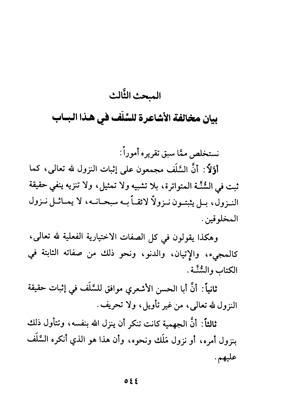 ثانياً: أن أبا الحسن الأشعري موافق للسلف في إثبات حقيقة النزول لله تعالى، من غير تأويل، ولا تحريف.