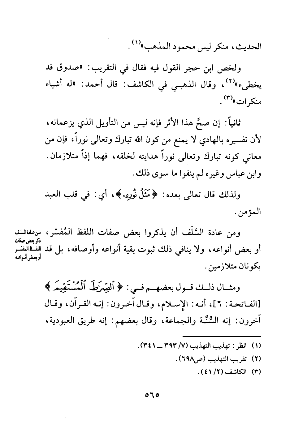 ثانياً: إن صح هذا الأثر فإنه ليس من التأويل الذي يزعمانه، لأن تفسيره بالهادي لا يمنع من كون الله تبارك وتعالى نوراً، فإن من معاني كونه تبارك وتعالى نوراً هدايته لخلقه، فهما إذاً متلازمان. وابن عباس وغيره لم ينفوا ما سوى ذلك.