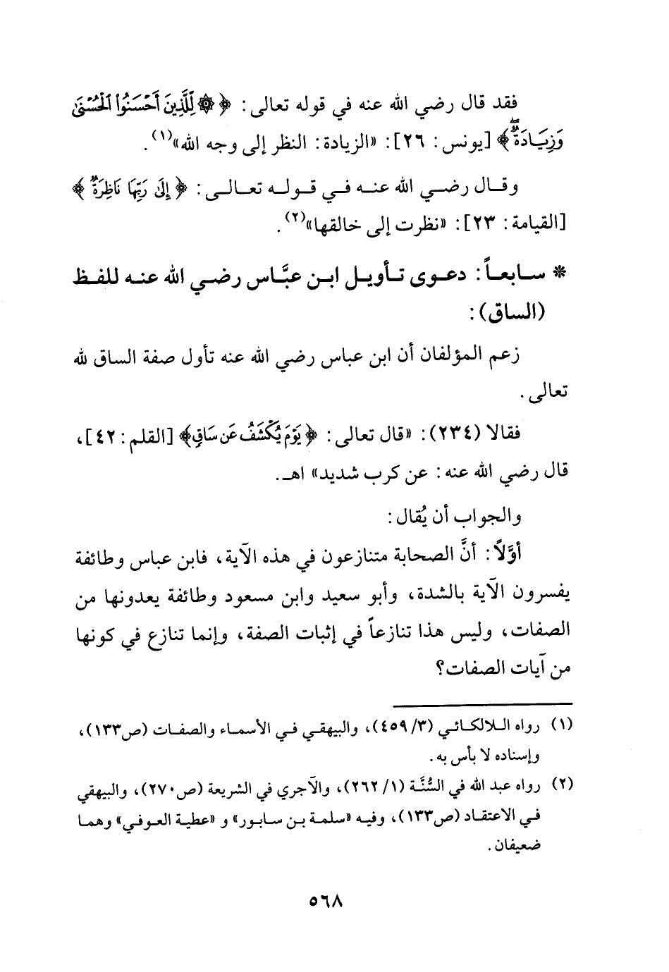 فقالا (234): (قال تعالى: {يوم يكشف عن ساق} القلم42، قال - رضي الله عنه -: عن كرب شديد) اهـ.