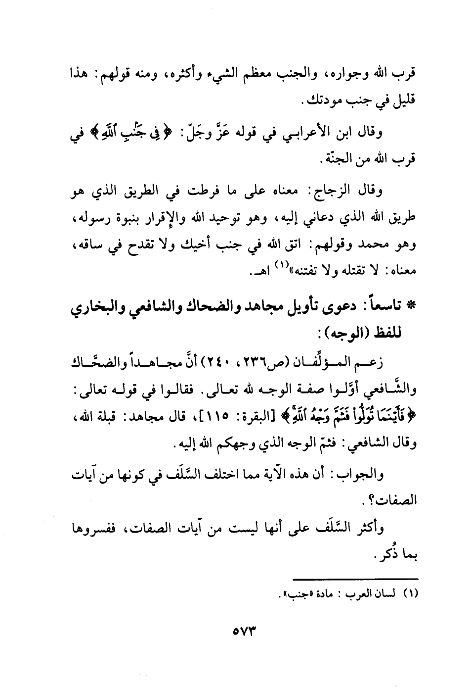 تاسعاً: دعوى تأويل مجاهد والضحاك والشافعي والبخاري للفظ (الوجه):