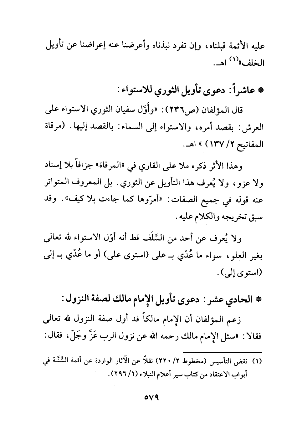 (¬1) نقض التأسيس (مخطوط 2/ 220) نقلاً عن الآثار الواردة عن أئمة السنة في أبواب الاعتقاد (1/ 296).