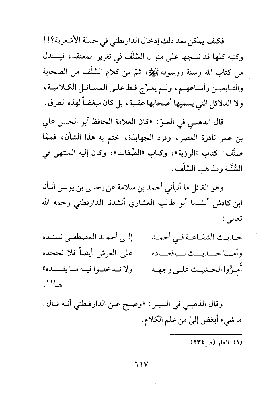وقال الذهبي في السير: (وصح عن الدارقطني أنه قال: ما شيء أبغض إلىّ من علم الكلام.