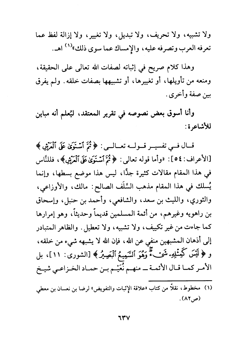 (¬1) مخطوط، نقلاً من كتاب "علاقة الإثبات والتفويض" لرضا بن نعسان بن معطي (ص82).