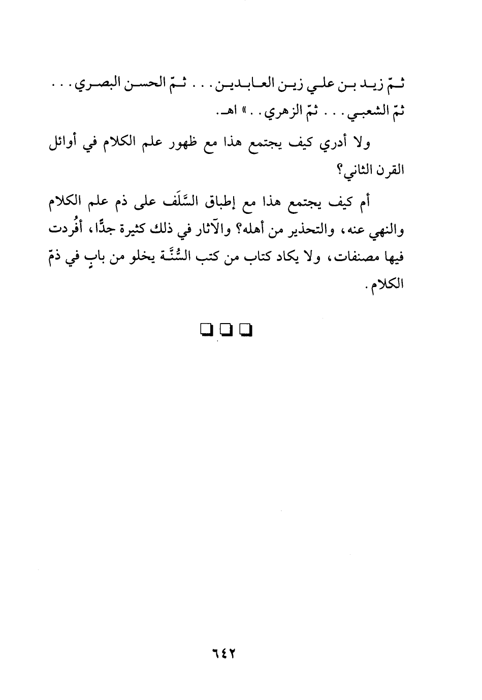 ولا أدري كيف يجتمع هذا مع ظهور علم الكلام في أوائل القرن الثاني؟