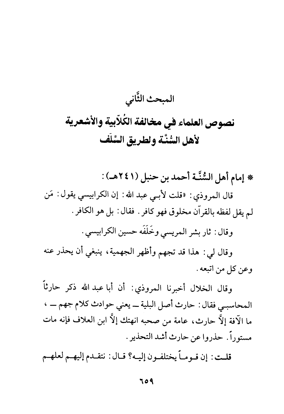 نصوص العلماء في مخالفة الكلابية والأشعرية لأهل السنة ولطريق السلف