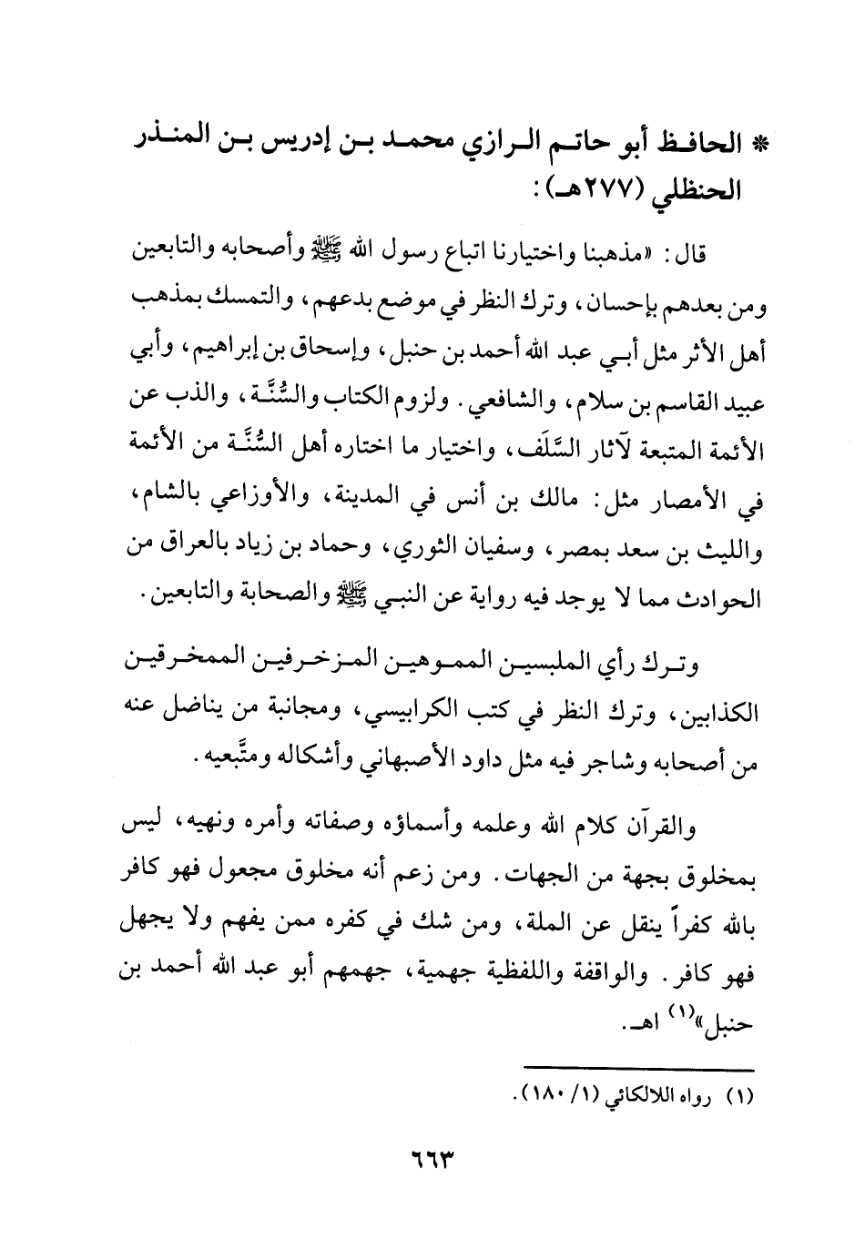 - الحافظ أبو حاتم الرازى محمد بن إدريس بن المنذر الحنظلى (277 هـ)
