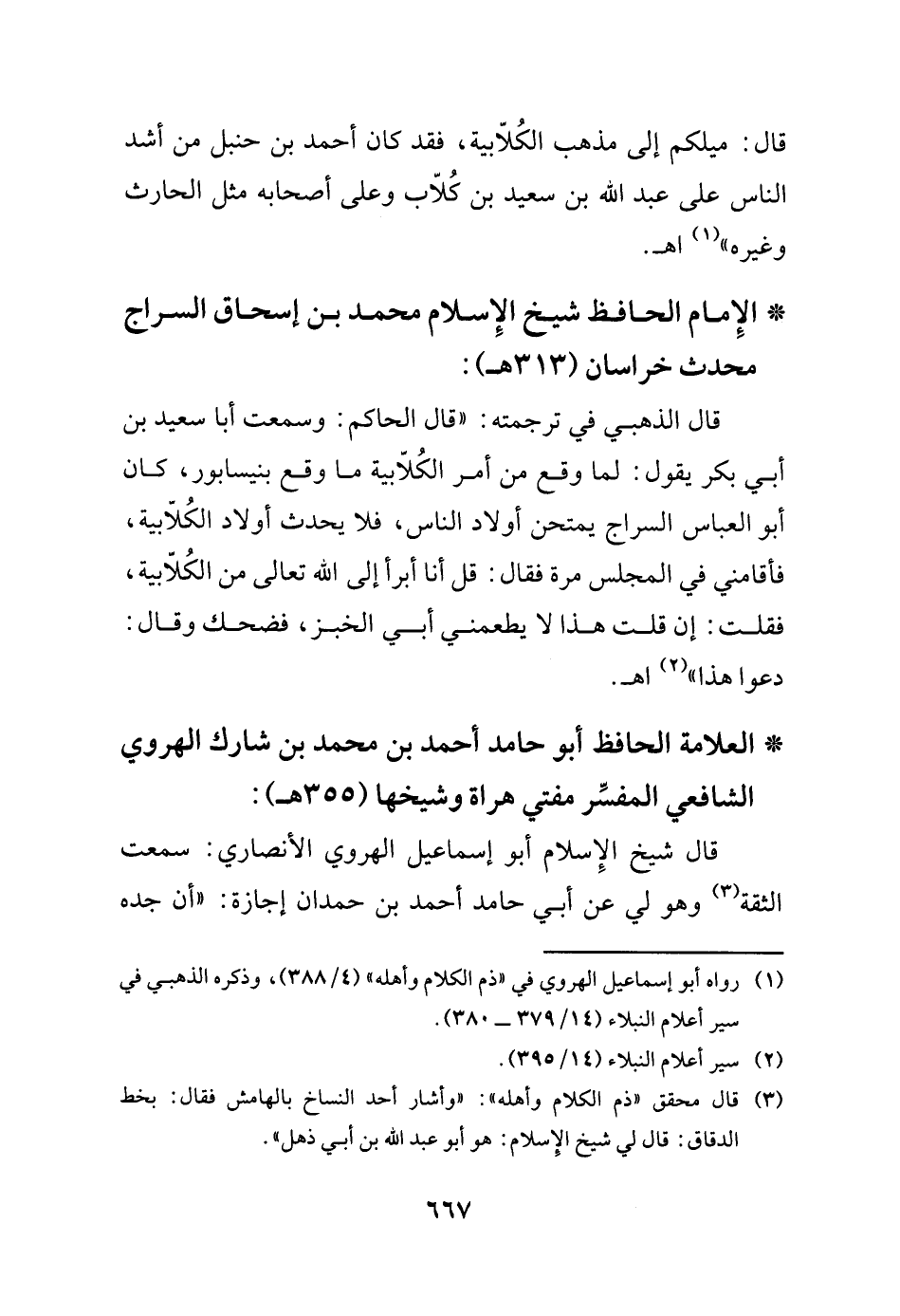 (¬1) رواه أبو إسماعيل الهروي في ذم الكلام وأهله (4/ 388) وذكره الذهبي في سير أعلام النبلاء (14/ 379 - 380).