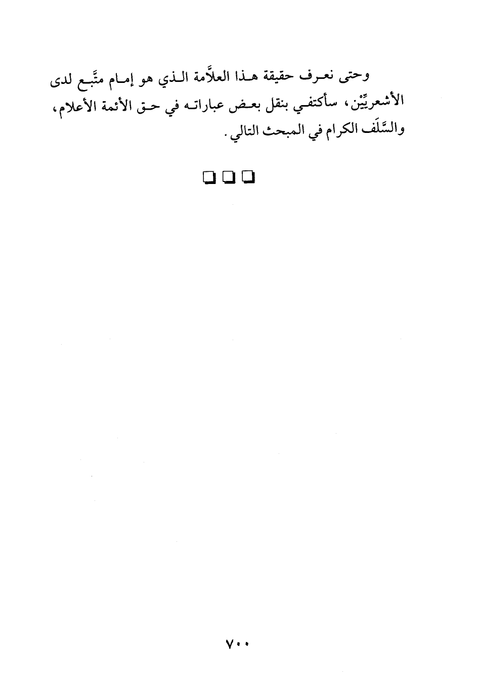 وحتى نعرف حقيقة هذا العلامة الذي هو إمام متبع لدى الأشعريين، سأكتفي بنقل بعض عباراته في حق الأئمة الأعلام، والسلف الكرام.