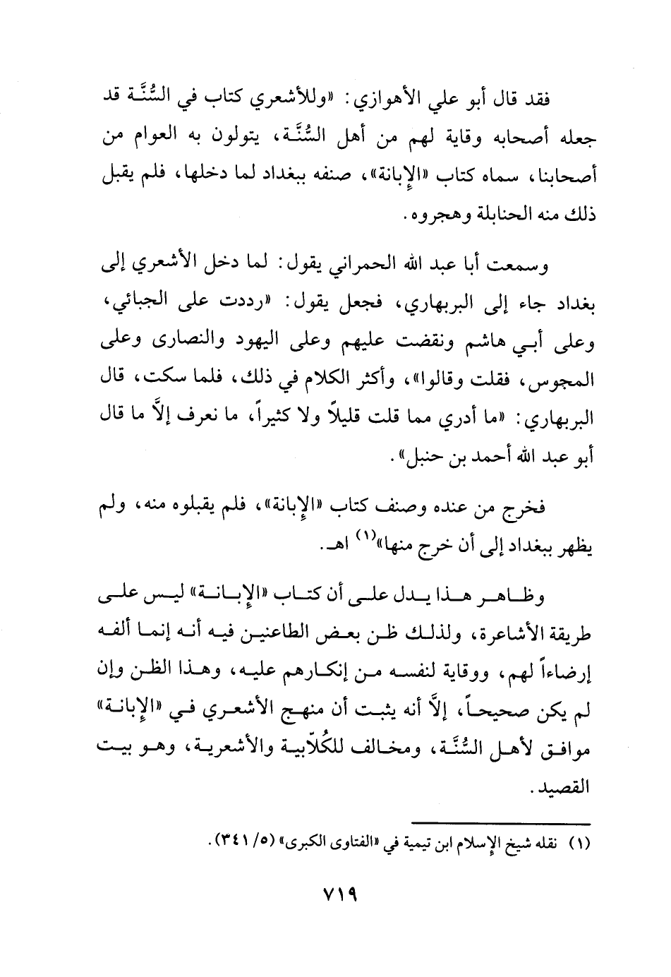 فقد قال أبو علي الأهوازي: (وللأشعري كتاب في السنة قد جعله أصحابه وقاية لهم من أهل السنة، يتولون به العوام من أصحابنا، سماه كتاب الإبانة، صنفه ببغداد لما دخلها، فلم يقبل ذلك منه الحنابلة وهجروه.