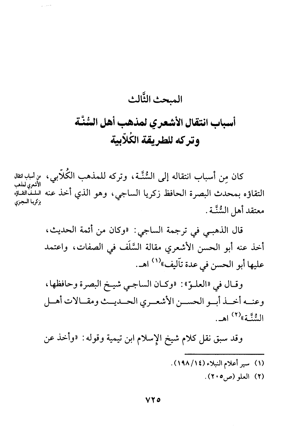 أسباب انتقال الأشعري لمذهب أهل السنة وتركه للطريقة الكلابية