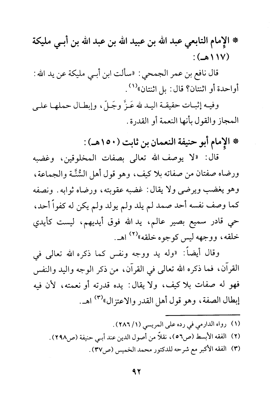 (¬3) الفقه الأكبر مع شرحه للدكتور محمد الخميس ص37.