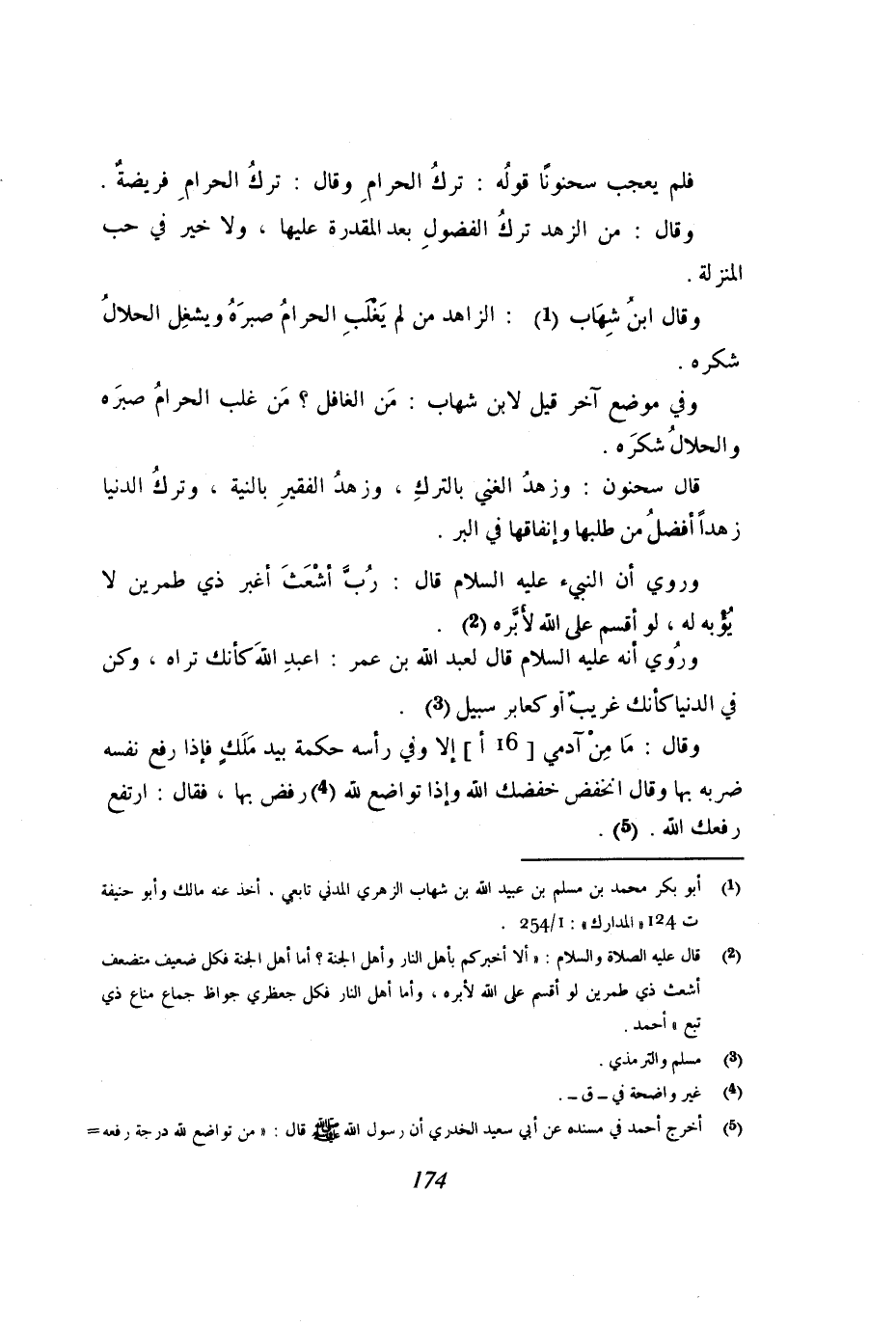فلم يعجب سحنونًا قوله: تركُ الحرام، وقال: ترك الحرام فريضة، وقال: من الزهد ترك الفضول بعد المقدرة عليها، ولا خير في حب المنزلة.