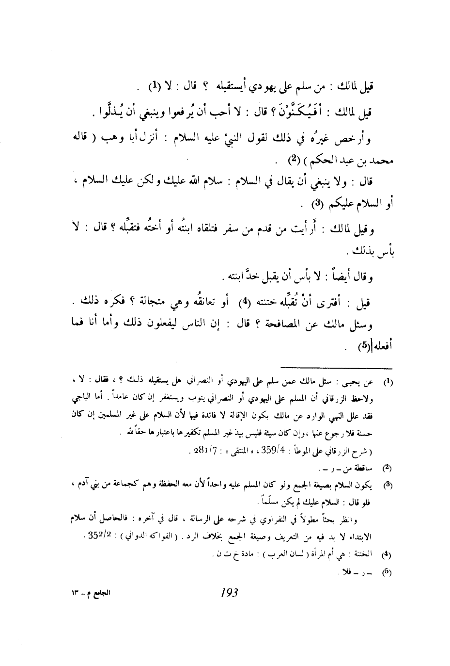 قيل لمالك: من سلم على يهودي أيستقيله؟ قال: لا.
