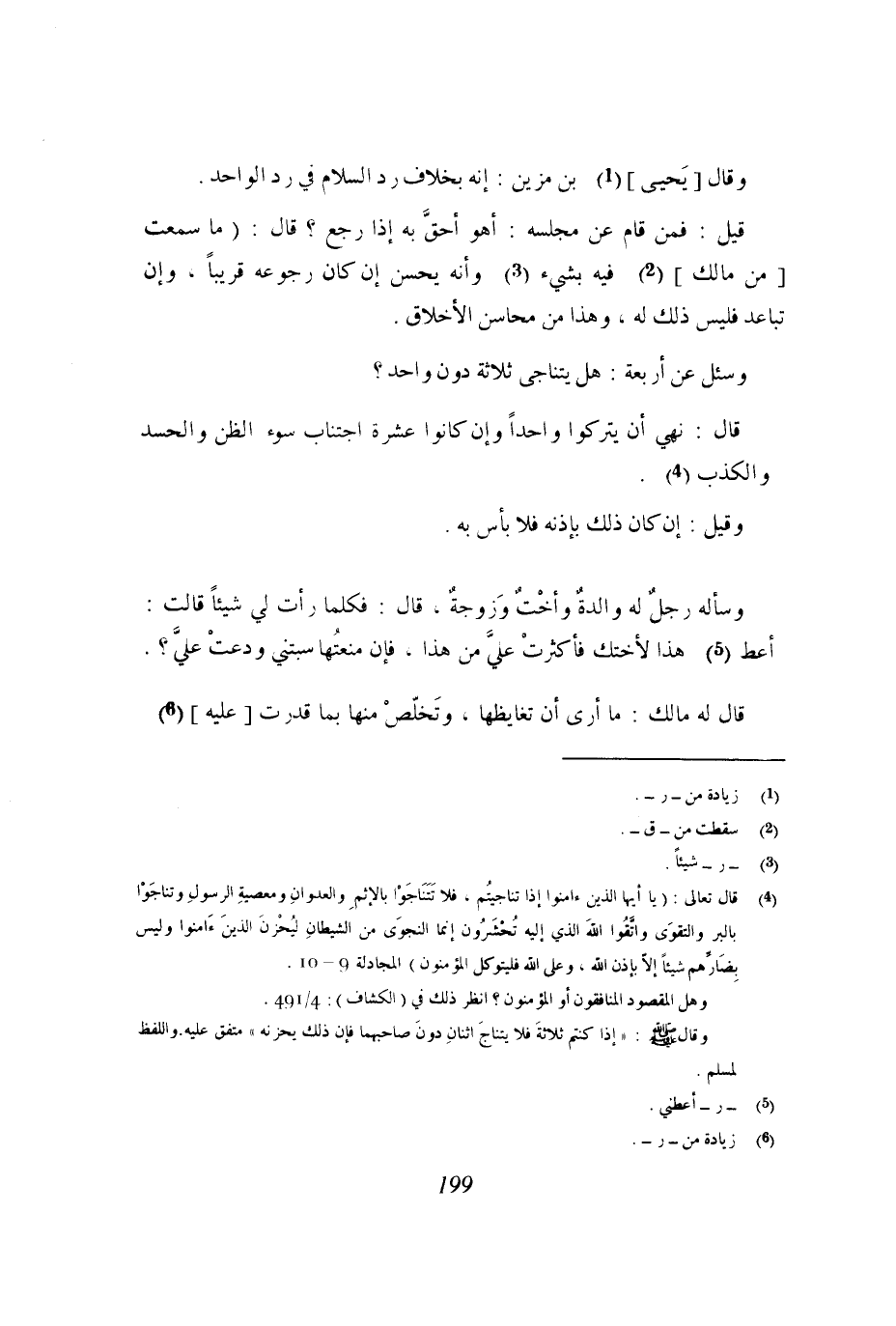 وسئل عن أربعة: هل يتناجى ثلاثة دون واحد؟