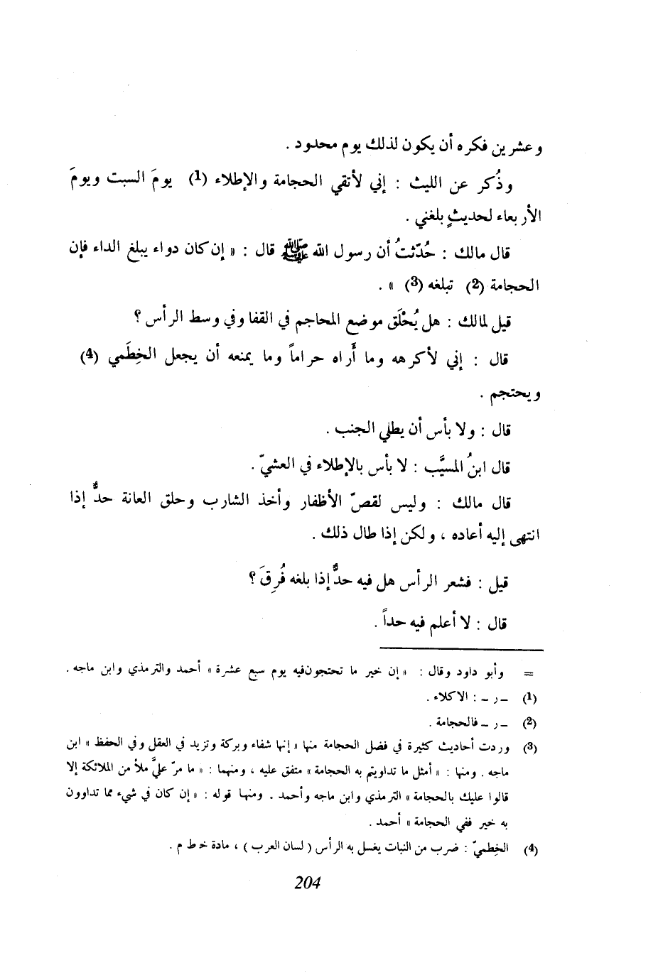 قيل لمالك: هل يُحلق موضع المحاجم في القفا وفي وسط الرأس؟