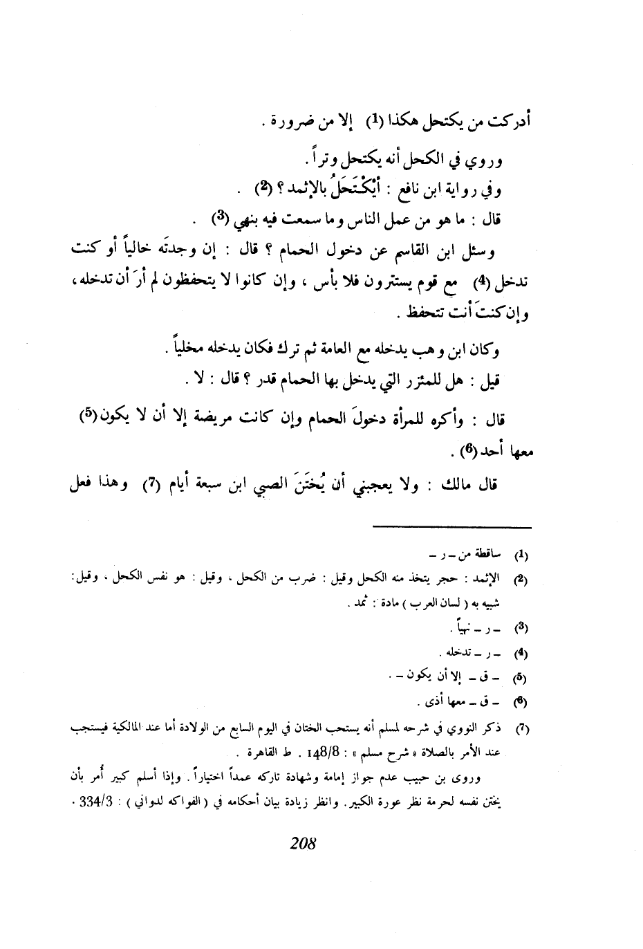 وسئل ابن القاسم عن دخول الحمام؟ قال: إن وجدته خاليًا أو كنت تدخل مع قوم يستترون فلا بأس، وإن كانوا لا يتحفظون لم أرَ أن تدخله، وإن كنت أن تتحفظ.