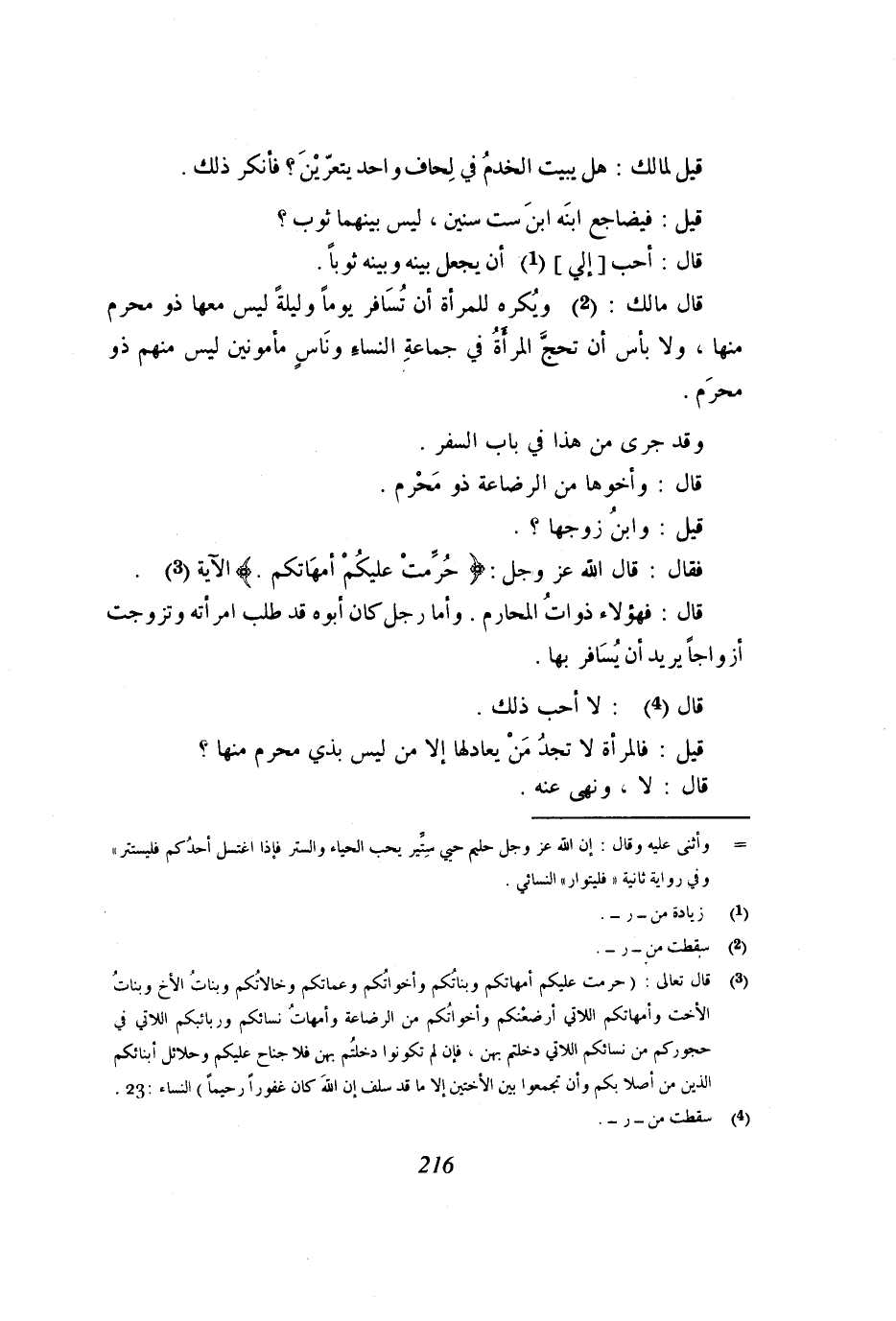 قال: فهؤلاء ذوات المحارم، وأما رجل كان أبوه قد طلب امرأته وتزوجت أزواجًا يريد أن يسافر بها.