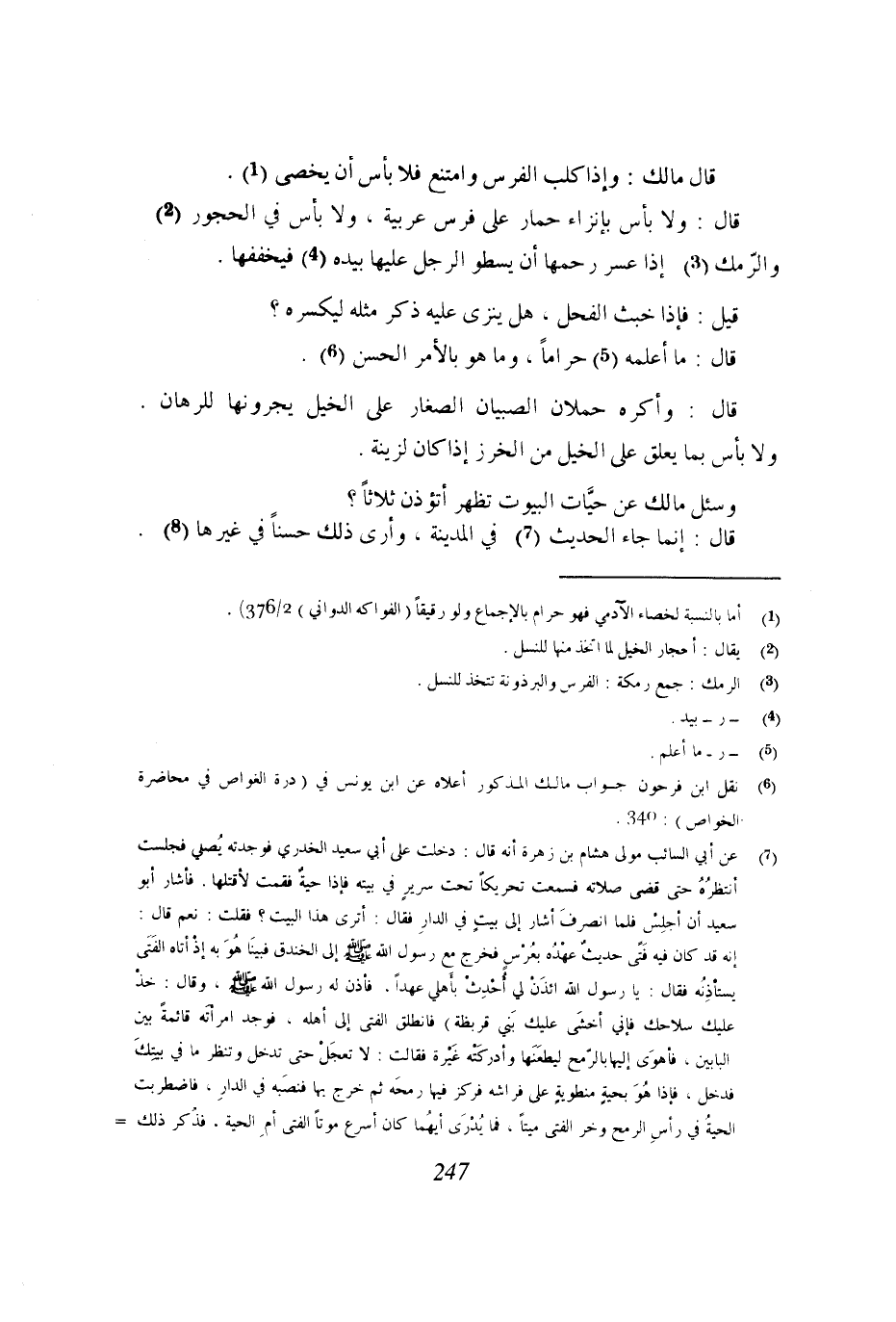 وسئل مالك عن حيات البيوت تظهر أتؤذن ثلاثًا؟