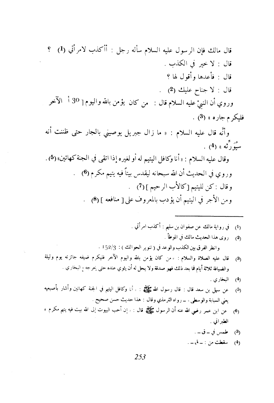 قال مالك فإن الرسول عليه الصلاة والسلام سأله رجل: أأكذب لامرأتي؟