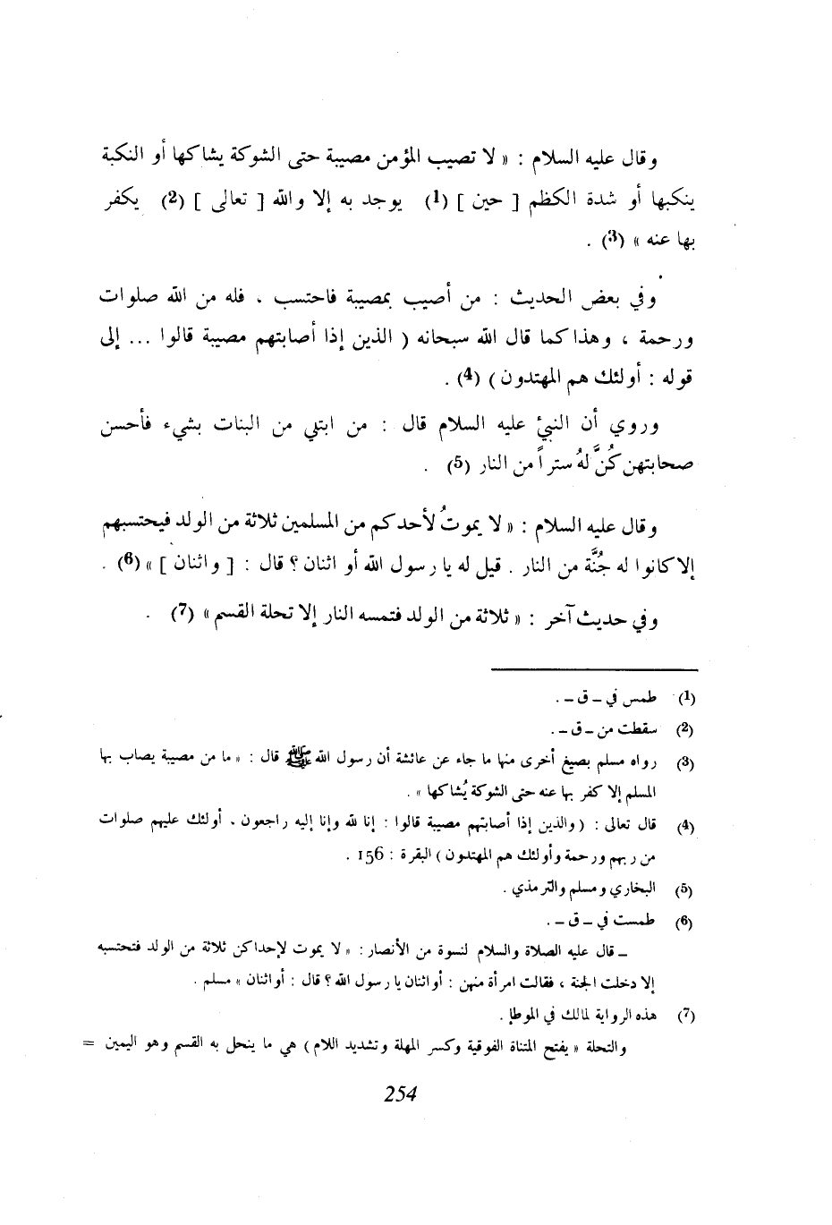 وفي بعض الحديث: (من أصيب بمصيبة فاحتسب، فله من الله صلوات ورحمة)، وهذا كما قال الله سبحانه: {الَّذِينَ إِذَا أَصَابَتْهُم مُّصِيبَةٌ قَالُوا إِنَّا لِلّهِ وَإِنَّا إِلَيْهِ رَاجِعونَ * أُولَئِكَ عَلَيْهِمْ صَلَوَاتٌ مِّن رَّبِّهِمْ وَرَحْمَةٌ وَأُولَئِكَ هُمُ الْمُهْتَدُونَ} [البقرة: 156].