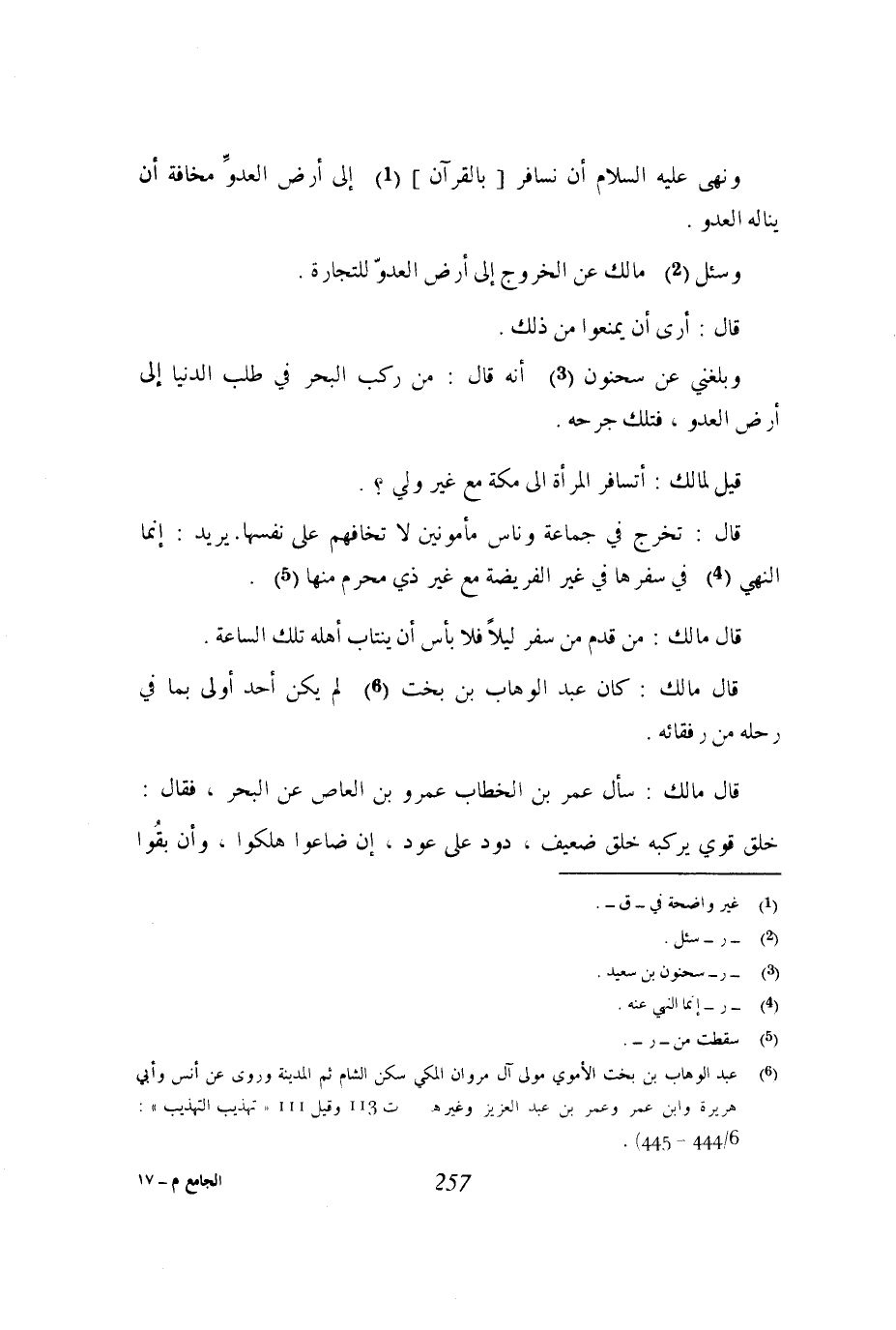 وبلغني عن سحنون أنه قال: من ركب البحر في طلب الدنيا إلى أرض العدو، فتلك جرحه.