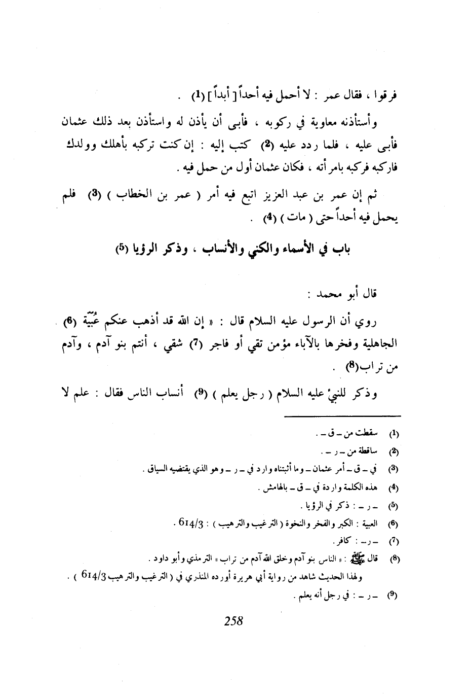 باب في الأسماء والكني والأنساب، وذكر الرؤيا
