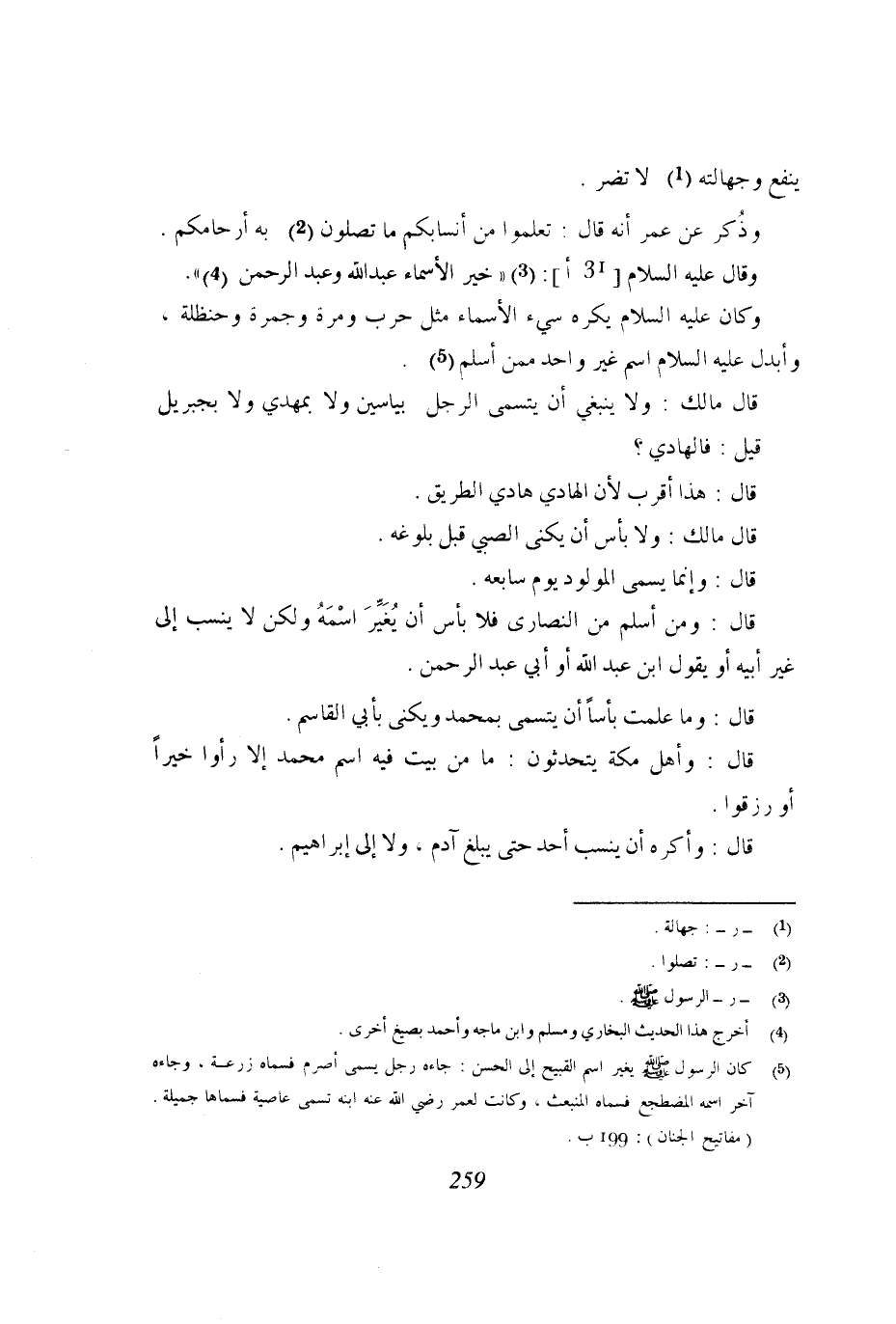 وقال عليه الصلاة والسلام [31 أ]: (خير الأسماء عبد الله وعبد الرحمن).