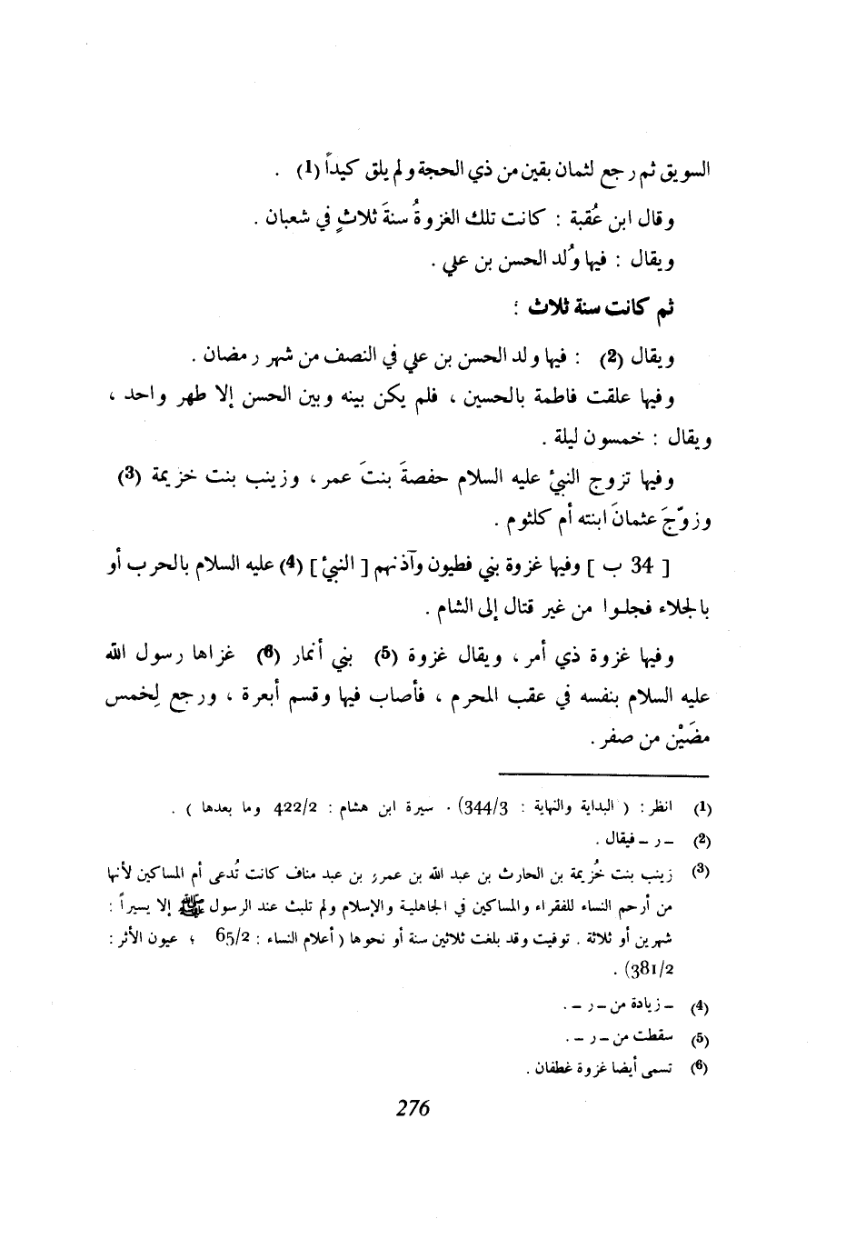 وفيها تزوج النبي عليه الصلاة والسلام حفصة بنت عمر، وزينب بنت خزيمة، وزج عثمان ابنته أم كلثوم.
