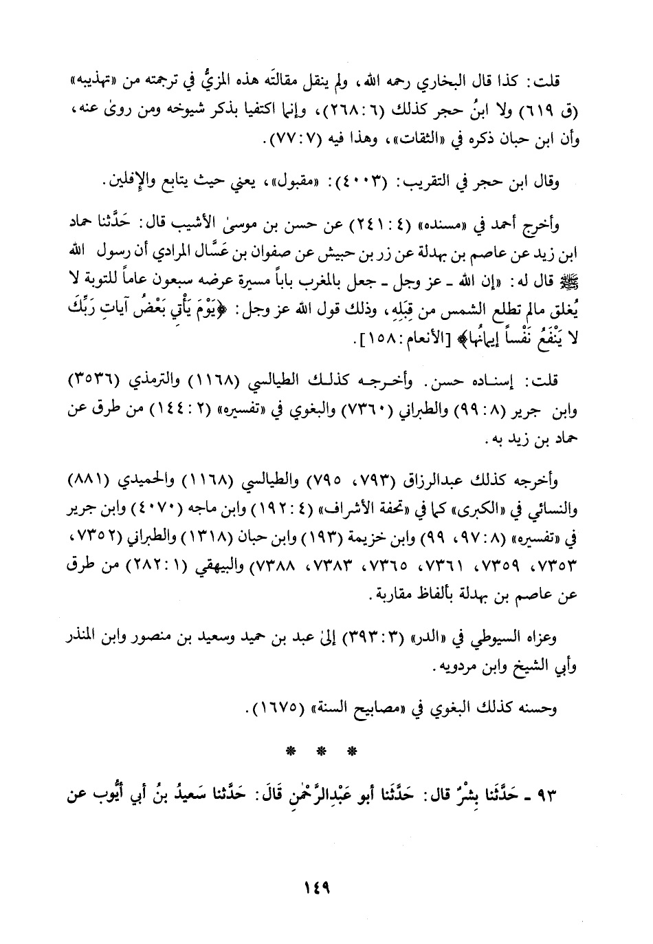 93 - حَدَّثَنَا بِشْرٌ قَالَ: حَدَّثَنَا أَبُو عَبْدِ الرَّحْمَنِ قَالَ: حَدَّثَنَا سَعِيدُ بْنُ أَبِي أَيُّوبَ، عَنْ -[150]- عَقِيلٍ، وَيُونُسَ بْنِ يَزِيدَ، عَنِ ابْنِ شِهَابٍ، عَنْ أَبِي سَلَمَةَ بْنِ عَبْدِ الرَّحْمَنِ، عَنْ عَائِشَةَ، أَنَّهَا قَالَتْ: قَالَ رَسُولُ اللَّهِ صَلَّى اللهُ عَلَيْهِ وَسَلَّمَ: §«مَنْ حَمَلَ مِنْ أُمَّتِي دَيْنًا ثُمَّ جَهَدَ فِي قَضَائِهِ فَمَاتَ قَبْلَ أَنْ يَقْضِيَهُ فَأَنَا وَلِيُّهُ»