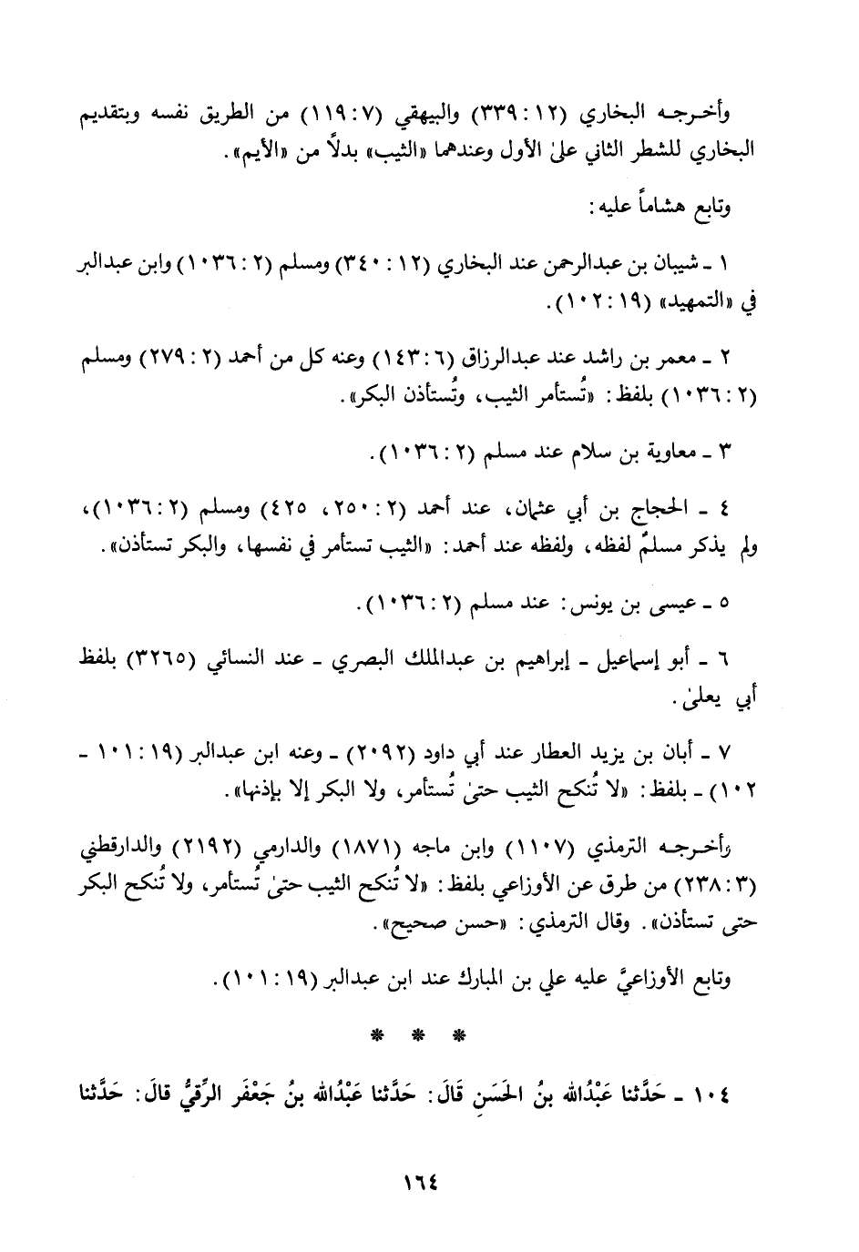104 - حَدَّثَنَا عَبْدُ اللَّهِ بْنُ الْحَسَنِ قَالَ: حَدَّثَنَا عَبْدُ اللَّهِ بْنُ جَعْفَرٍ الرَّقِّيُّ قَالَ: حَدَّثَنَا -[165]- عُبَيْدُ اللَّهِ بْنُ عَمْرٍو، عَنْ زَيْدِ بْنِ أَبِي أُنَيْسَةَ، عَنْ أَبِي إِسْحَاقَ، عَنْ وَهْبِ بْنِ جَابِرٍ قَالَ: سَمِعْتُ عَبْدَ اللَّهِ بْنَ عَمْرٍو قَالَ: سَمِعْتُ رَسُولَ اللَّهِ صَلَّى اللهُ عَلَيْهِ وَسَلَّمَ يَقُولُ: §«لَا يَنْبَغِي لِمُسْلِمٍ أَنْ يُضَيِّعَ مَنْ يَقُوتُ»