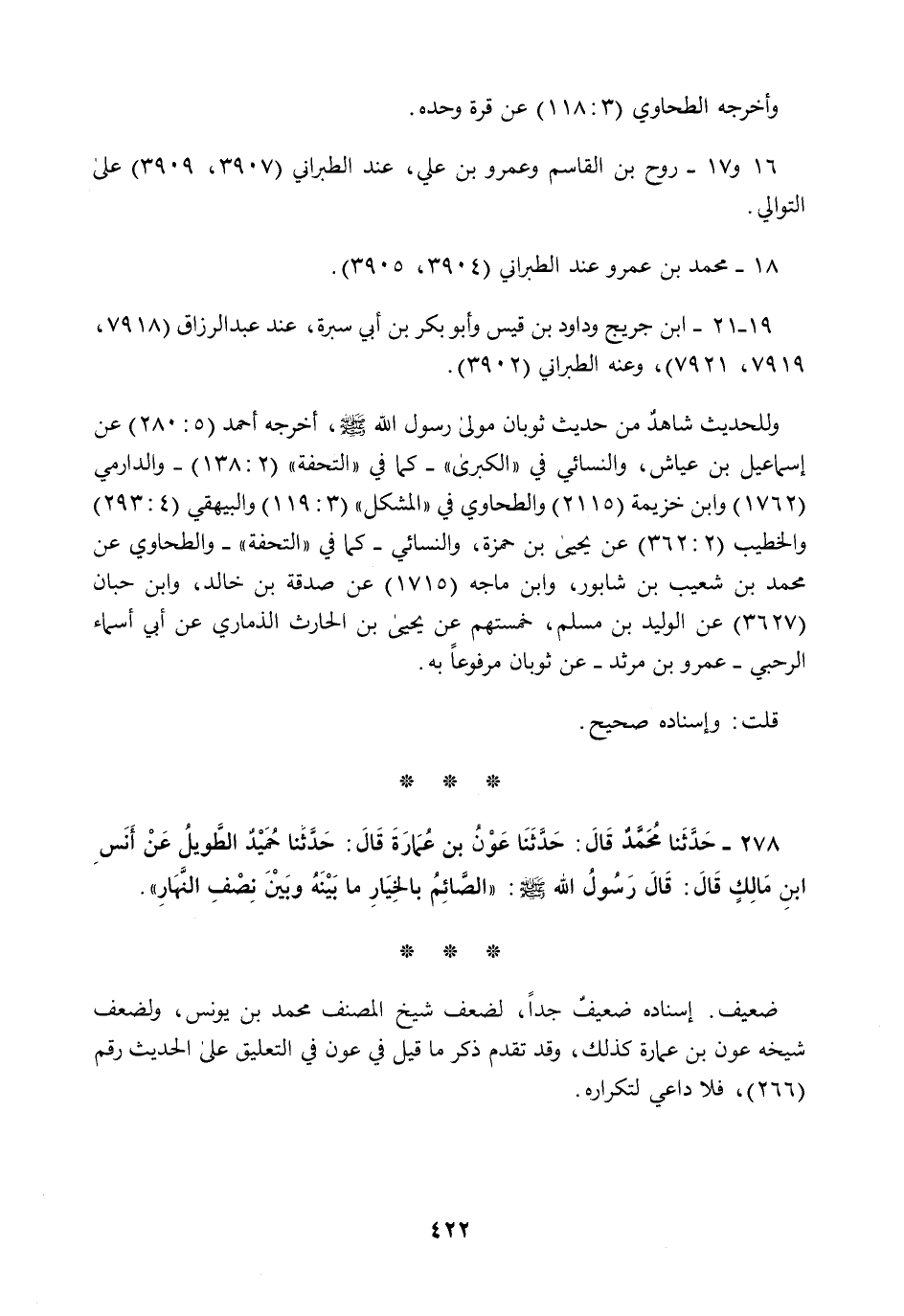 278 - حَدَّثَنَا مُحَمَّدٌ قَالَ: حَدَّثَنَا عَوْنُ بْنُ عُمَارَةَ قَالَ: حَدَّثَنَا حُمَيْدٌ الطَّوِيلُ، عَنْ أَنَسِ بْنِ مَالِكٍ قَالَ: قَالَ رَسُولُ اللَّهِ صَلَّى اللهُ عَلَيْهِ وَسَلَّمَ: §«الصَّائِمُ بِالْخِيَارِ مَا بَيْنَهُ وَبَيْنَ نِصْفِ النَّهَارِ»