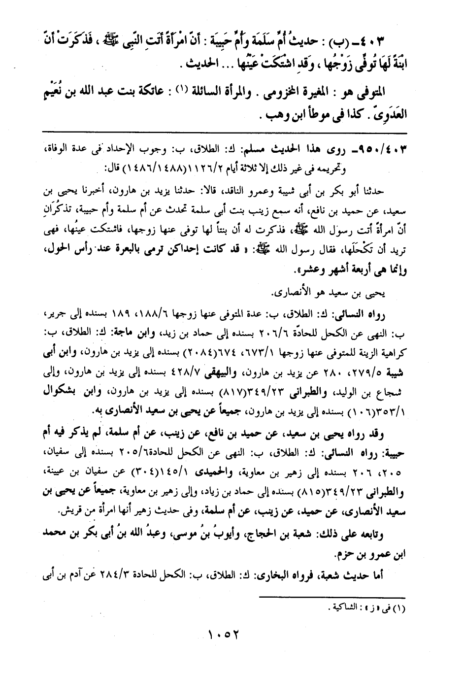 403- (ب): حديث أم سلمة وأم حبيبة: أن امرأةً أتت النبي صلى الله عليه وسلم، فذكرت أن ابنةً لها توفي زوجها، وقد اشتكت عينها .. .. الحديث.