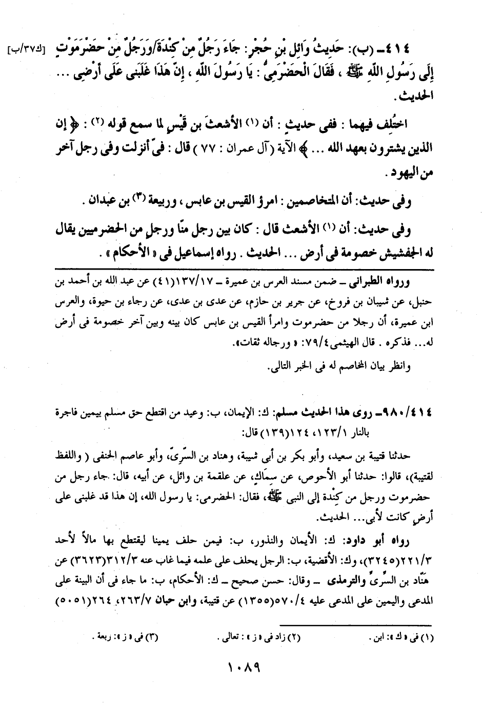 414- (ب): حديث وائل بن حجرٍ: جاء رجلٌ من كندة ورجلٌ من حضرموتٍ إلى رسول الله صلى الله عليه وسلم، فقال الحضرمي: يا رسول الله، إن هذا غلبني على أرضي .. .. الحديث.