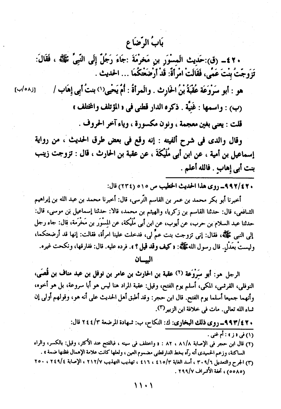 420 - (ق): حديث المسور بن مخرمة: جاء رجل إلى النبي صلى الله عليه وسلم، فقال: تزوجت بنت عمي، فقالت امرأةٌ: قد أرضعتكما .. .. الحديث.